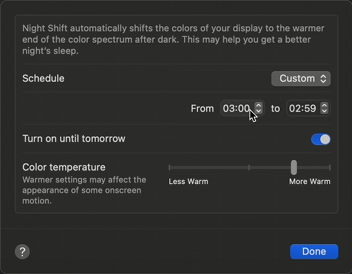 Daripada bikin mata kalian kerja keras dan jadi lelah mantengin screen tanpa ampun, mending manfaatin fitur yang udah disediain di macOS. Buat kalian yang pake macOS Sierra sampai macOS Sequoia (bahkan yang terbaru), ada fitur Night Shift yang bisa bikin kerja malam jadi lebih nyaman. Fitur Dark Mode hanya tersedia di Mojave ke atas ya.