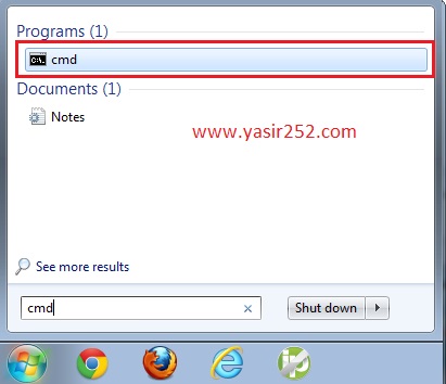 - Buka Start Menu lalu dikotak pencarian ketik cmd seperti gambar dibawah