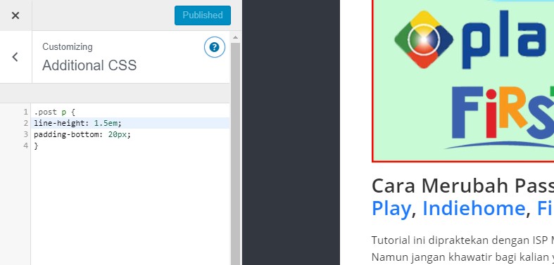 Jika suatu waktu kalian ingin sebuah space antar paragraf yang sangat besar, kalian bisa masukkan kode CSS ke pos melalui Text Editor di sudut kanan atas.